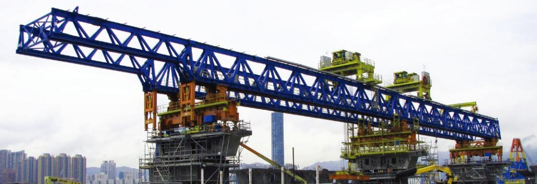 Сегментальный монтажный козловой кран LG40 имеет длину 104 метра, высоту 4,35 метра и вес 335 тонн. Вся машина в основном состоит из главной балки, передних, средних и задних опорных ног, главного грузоподъемного крана, передвижного крана массой 12,5 тонн, распределителя, подвески и натяжения.