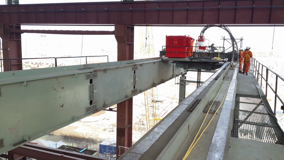 В июне 2015 года DLT оказала поддержку заказчику на месте при первой эксплуатации портала, предоставив инженера-механика и инженера-конструктора для осмотра портала до и во время операции подъема. Первая операция портала по вращению, подъему, скольжению, опусканию и установке статора массой 360 тонн была успешно проведена на теплоэлектростанции мощностью 2 х 660 МВт, расположенной в Чхабре, Раджастхан, Индия