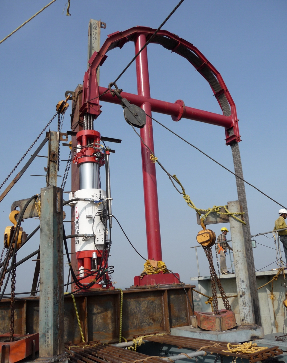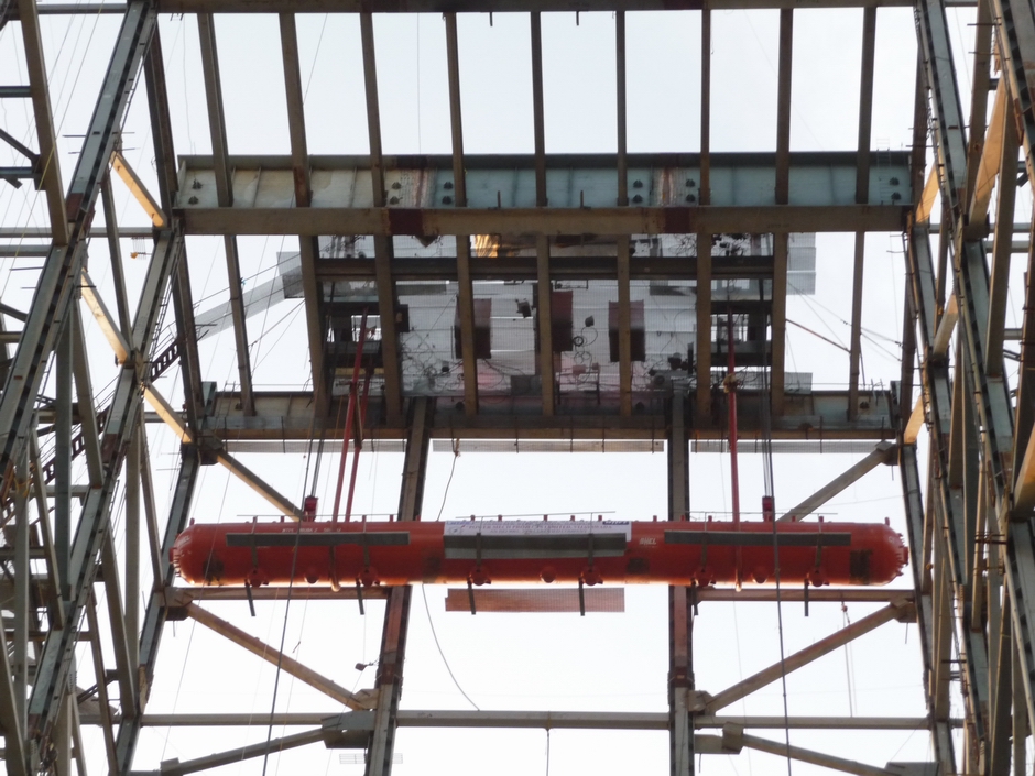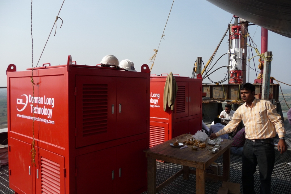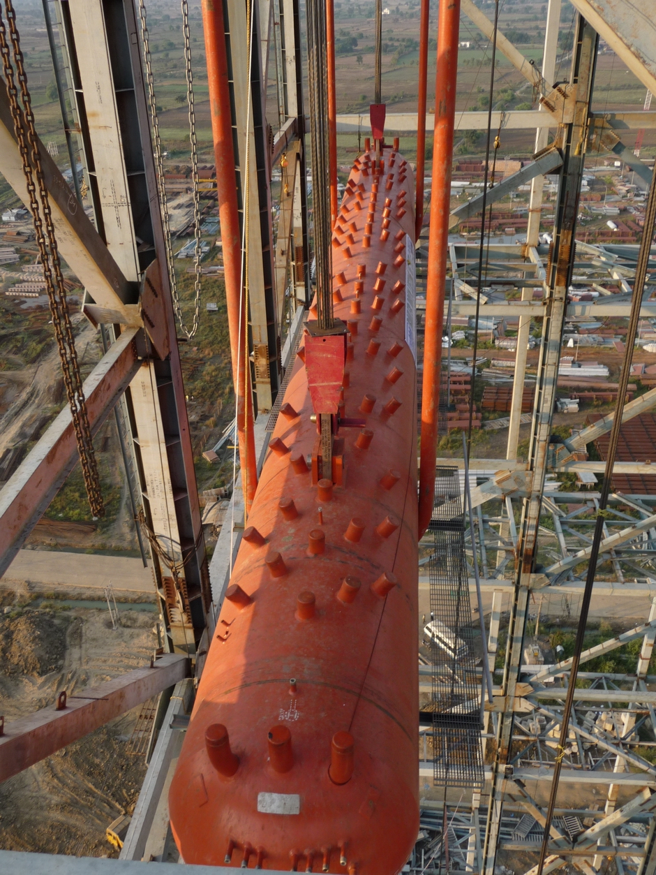 В 2010 году DLT поставила систему подъема домкратом грузоподъемностью 370 тонн западному подразделению BHEL в Индии для использования при строительстве электростанций. Система состоит из 2 домкратов No DL-S185, приводимых в действие 2 гидравлическими блоками питания No DL-L40/1/300/ E с электрическим приводом, обеспечивающими скорость подъема 20 м/час и управляемыми с помощью нашей подвесной системы управления DL-M2. Первый паровой барабан весом 230 тонн был поднят на высоту 70 метров за одну смену в ноябре 2010 года (смотрите фотографии ниже) для паротурбинной электростанции мощностью 2 х 500 кВт в Муде. Паровой барабан был доставлен и установлен на уровне земли непосредственно под конечным положением, а затем поднят вертикально на конечную высоту и затем перенесен с домкратов на стационарные подвесы. Планируется, что в 2011 году и в последующие годы будет завершено монтаж многих других барабанов котла.