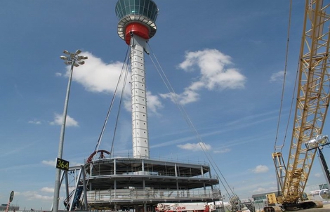 Новая башня расположена рядом с терминалом 3 и окружена действующими стоянками для самолетов и рулежной дорожкой. Чтобы свести к минимуму влияние эксплуатации аэропорта, была разработана концепция монтажа, позволяющая сконструировать кабину за пределами площадки перед транспортировкой на постоянную площадку и поднять ее, чтобы можно было установить готовые секции мачты.