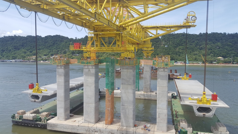 Компания DLT Engineering спроектировала и поставила главному подрядчику Daelim-Swee инновационный портал для монтажа настила моста грузоподъемностью 2 х 870 тонн для проекта моста Тембуронг в Брунее. Портал использовался для одновременного возведения двух сборных железобетонных балок настила моста длиной 50 м весом 870 тонн, и считается, что это первый в истории мостостроительный портал такого типа. Он был использован для возведения всех балок настила моста на морском виадуке длиной 13,65 км через Брунейский залив, соединяющем регионы Бруней-Муара и Тембуронг. На портале была установлена первая пара балок моста в январе 2017 года, и проект эксплуатировался в течение 2 лет. Портал был спроектирован для возведения секций виадука шириной в некоторых секциях до четырех этажей со скоростью возведения одного пролета моста каждые 2 смены.