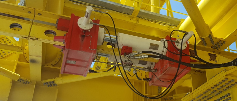 Для повышения безопасности и снижения веса портала по сравнению с обычной лебедочной системой в портале использовались домкраты DLT strand для подъема. Наши ленточные домкраты оснащены системой медленного опускания с синхронизацией хода, позволяющей осторожно опускать две балки моста на опоры для плавной и сбалансированной передачи нагрузки. Поперечное перемещение балок настила после подъема и спуска портала вперед было достигнуто с помощью домкратов DLT для подъема и скольжения. Портал имеет три опоры и использует инновационную последовательность спуска, позволяющую избежать размещения тяжелых грузов на балках настила вдали от опор при перемещении портала вперед на следующий пролет. Гидравлические системы портала централизованно контролируются с помощью нашей компьютерной системы управления DL-P40.