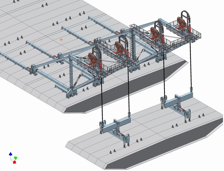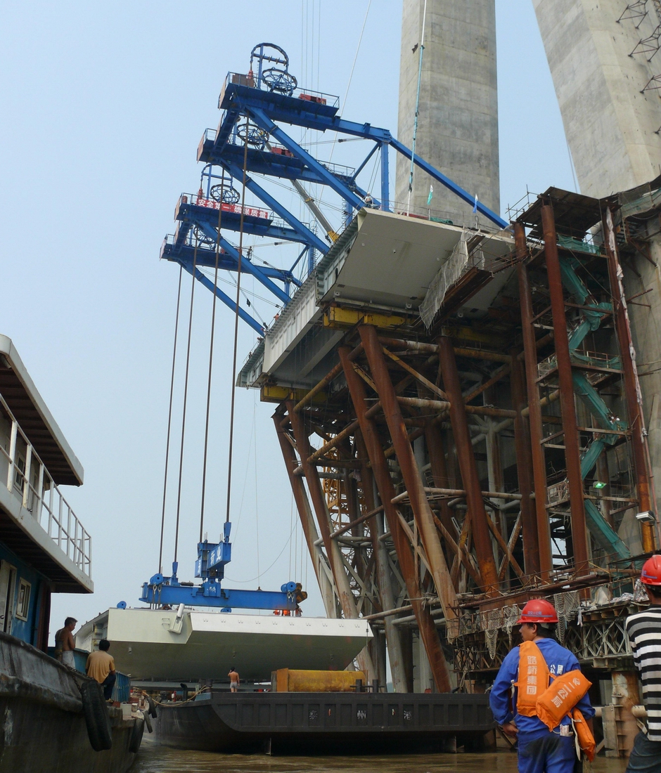 Вантовый мост Сун расположен в городе Хуанган, провинция Хубэй, Китай, и пересекает реку Чанцзян. Его основной пролет составляет 926 м, а боковые пролеты - 275 м, что делает его третьим по длине вантовым мостом в мире. Компания DLT получила субподряд от Second Highway Engineering Bureau на проектирование пары порталов для монтажа палубы грузоподъемностью 280 тонн для возведения стальных ортотропных сегментов палубы весом до 369 тонн каждый на одной половине основного пролета. Эти порталы были спроектированы для максимального повторного использования в будущих проектах. Другая половина палубы была возведена во время Второй навигации с использованием порталов для монтажа палубы, которые мы поставили им для моста Сутонг.