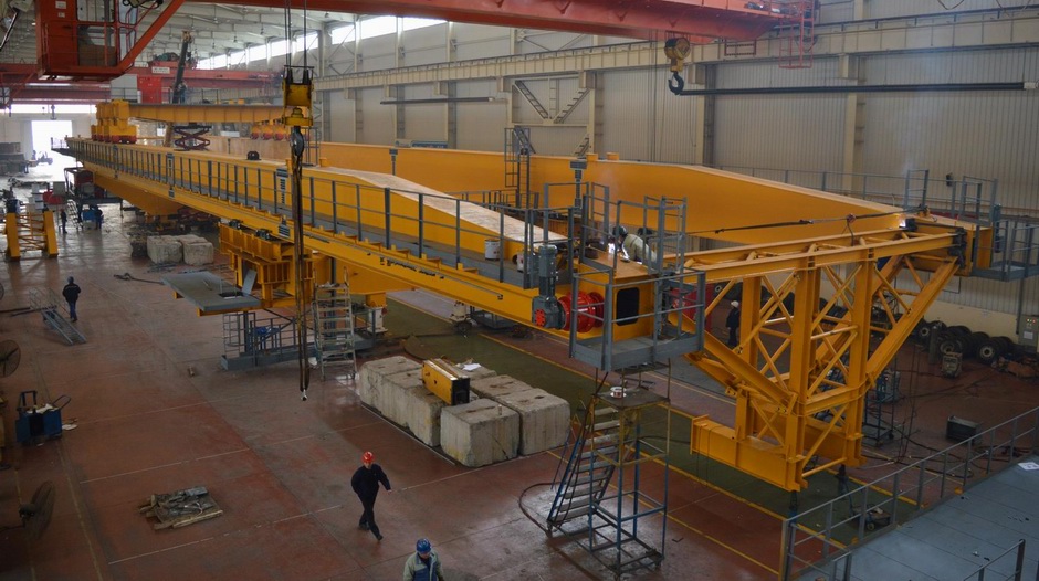 Для доставки грузов радиусом в плане более 100 м было необходимо спроектировать транспортер с быстроразъемным центральным соединением опорной балки, чтобы он мог работать как две независимо управляемые половины при прохождении участков с малыми радиусами в плане и работать как единое целое при доставке балок моста в заднюю часть монтажника пролетного строения.