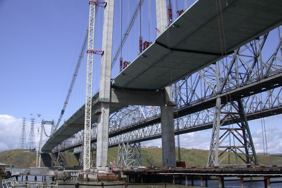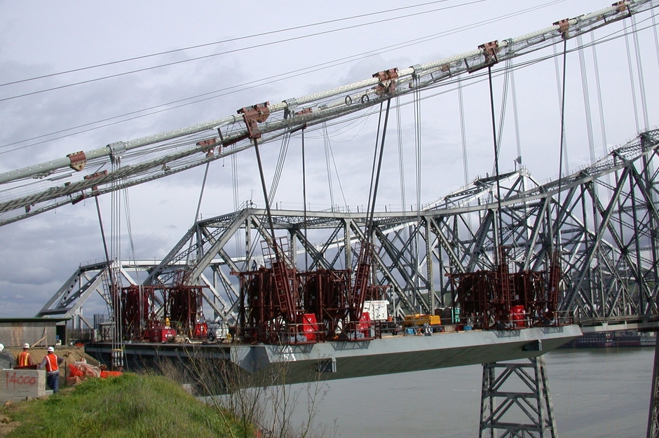 Все 24 палубных блока были подняты в течение 79 дней. На рисунке ниже показан последний палубный блок, поднимаемый в конечное положение